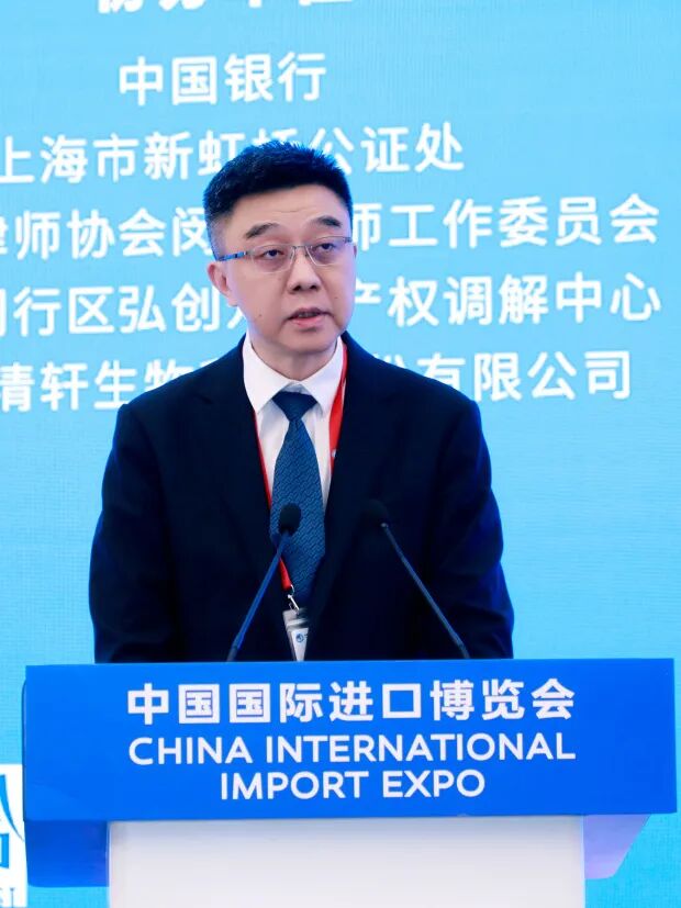 2025年11月8日下午,第八届中国国际进口博览会期间,由上海市商务委、虹桥国际中央法务区建设领导小组指导,上海市闵行区商务委员会、上海市闵行区司法局、上海市闵行区市场监督管理局(知识产权局)、上海市知识产权保护中心主办,上海段和段(虹桥国际中央商务区)律师事务所承办的“国际贸易知识产权保护交流会(进博会专场)”在国家会展中心4.2H馆B1厅成功举办。上海市司法局党委委员、副局长宋烈,上海市知识产权局党组成员、副局长余晨,虹桥国际商务区管委会副主任王新,闵行区党组成员、副区长可晓林,国家会展中心(上海)有限公司党委副书记、总裁宁风,同济大学党委副书记刘润,上海政法学院副校长罗立刚出席,来自知识产权领域的专家、学者,律师代表、企业代表及同济大学、上海政法学院师生等近300人参加本次活动。