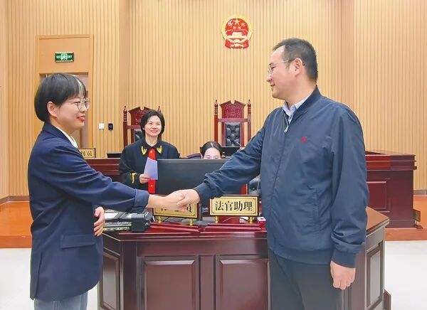 近日,安徽省合肥市中级人民法院合肥知识产权法庭成功调解一起侵害商标权纠纷案。一家白酒企业发现某百货商行销售侵权商品,遂诉至法院。一审法院判决被告停止侵权并赔偿经济损失,被告以经营困难、赔偿金额过高为由提起上诉。在二审法院法官耐心协调下,双方就赔偿数额达成一致意见。图为双方握手言和。