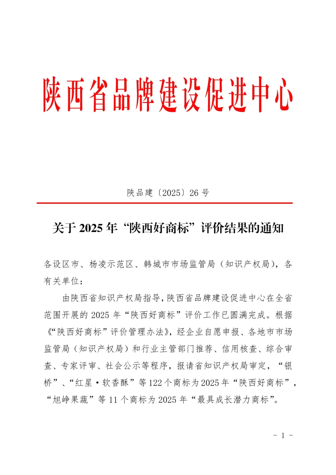 “陕西好商标”是由陕西省知识产权局指导,陕西省品牌建设促进中心根据《“陕西好商标”评价管理办法》规定,按照“企业自愿申报、各地市市场监管局(知识产权局)和行业主管部门推荐、信用核查、综合审查、专家评审、社会公示、省知识产权局审定”程序评选产生。