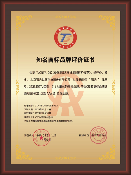 近日,北京石头世纪科技股份有限公司(以下简称“石头科技”)核心商标“石头”经过多轮严格评审,荣获AAA知名商标品牌评价证书。该商标注册于第7类“电动清洁机械和设备;真空吸尘器”等商品与服务,是企业品牌资产的重要组成部分。此次获评不仅是权威机构对“石头”商标市场声誉与综合实力的肯定,也是石头科技系统性品牌建设成果的集中体现。